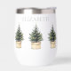 Dieser einfache und minimale Weihnachtswein-Tumbler bietet einen kleinen rustikalen Weihnachtsbaum mit weißem Licht. Personalisieren Sie Ihre Auswahl an speziellen Texten. Das macht großartige personalisierte Gastgeschenke für Ihre Feiertagsveranstaltung.