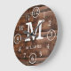 Rustikaler Mit Monogramm dunkelbrauner Holznachwei Große Wanduhr