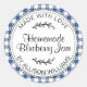 Rustikaler und einfacher hausgemachter Blaubeerenaufkleber mit Liebe, Blaubeermarmelade und Ihrem Namen in chic handgeschriebener Schriftzeichen-Kalligraphie und moderner Typografie auf einem klassisch-blauen Karo-Hintergrund mit einer stilvollen Touch von Blattwerk. Fügen Sie dem Label einfach Ihren Namen und den Produktnamen hinzu. Exklusiv für Sie entworfen von Happy Dolphin Studio. Wenn Sie Hilfe oder passende Produkte benötigen, kontaktieren Sie uns bitte unter happydolphinstudio@outlook.com.