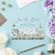 Rustikal speichern Sie die Dattelkarten mit "Save the Date" in eleganter Kalligraphie-Schrift, ergänzt durch eine landschaftliche Landschaft aus immergrünen Wasserbäumen und Bergen auf mattiertem oder transparentem Acrylgrund. Personalisieren Sie diese Waldberge speichern Sie die Daten mit Ihren Namen, Hochzeitstag und Standort. Ideal für Paare, die Hochzeiten in Urlaubsort in den Bergen beherbergen oder sich naturlich inspiriert Hochzeitsthemen widmen.