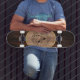 Rustikaler Name der Monogrammkarte aus Holz Skateboard
