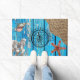 Rustikaler Nautic Blue Wood Burlap Starfish Fußmatte