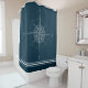Stilvoll und unterhaltsam ist dieser Duschvorhang das perfekte Dekor für Jachten oder Strandhütten. Das Design zeichnet sich durch ein rustikales Kompass-Design mit weißen Streifen am unteren Rand aus.