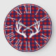 Rustikaler Navy Buffalo Karo Kariert & Deer Antler Große Wanduhr