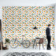 Akzentuieren Sie Ihre Wände mit dieser gemusterten Tapete aus Zitrusfrüchten. Es zeichnet sich durch lebhafte Orangen und Orangenblüten mit üppigem Blattwerk aus.