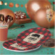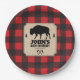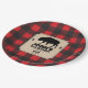 Ein Hintergrund der karierten Kontraste des roten Büffels gegen eine Packpapier-Blickplatte auf dieser Northwoods themed Platte. Die Platte hält den Text und kennzeichnet einen Bison (Büffel) zwischen zwei Kiefern. Die gekreuzte Axt macht ein kundenspezifisches Logo unten. Großer Zusatz zu einem Geburtstag, ein Junggeselle-Party, ein Saisonereignis oder ein Büffel kariert oder themed Feier des Holzfällers. Verfügbar mit zusammenpassenden Produkten.