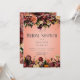 Dieses schlichte, rustikale Brautparty-Brunch-Design zeichnet sich durch eine Ober- und Untergrenze aus, die sich durch eine realistische Bordeaux-, Pfirsich-, Orange-, Gold- und Pflaumenblumen mit dunkelgrünem Blattwerk auf einem staubigen pfirsichfarbenen Hintergrund auszeichnet. Der Text wird auf einem weichen, weißen, blurfarbenen Oval-Overlay angezeigt. Romantisch und elegant. Erstellt von der einfachen Farmhouse Press.