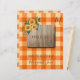 Eigene Broschüre für rustikale Rezeptorbinder im Landhausstil mit Sonnenblumensträuchern und Naturholz über einem karierten Gingham-Muster aus rostfarbenem, orange-gelbem Terracotta. ++++++++++++ Persönlich mit Ihrem Text (Titel der Rezeptkategorie) und Ihrem Familiennamen und Monogramm / Name initial!