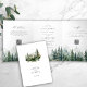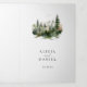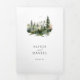Rustikale, elegante dreifach gefaltete Hochzeitseinladung mit Aquarellkiefer-Waldlandschaft und mit einem schicken, einfachen klassischen minimalistischen Typografie-Skript. ++++++++++++ Geeignet für Sommer-, Herbst- oder Wintergebirge, Camping-Abenteuer im Freien Waldweide immergrüne Hochzeiten in Urlaubsort.