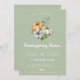 Rustikale Wasserfarbe Herbst Kürbisse, Erntedank Dinner Einladung. Design-Features, Aquarelltrio von bunten Kürbis und grüne Weinanbau. Hintergrundfarbe, in Weich-Weiß-Grün angezeigt, kann individuell angepasst werden.