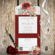 MIT ODER OHNE QR-CODE ZUM AUSSCHLIESSEN. Diese wunderschöne weiche Marsala Rot, Rosa rot, hellblau und grün Bouquet Kaskaden von der Oberseite der Karte über einen reichen roten Hintergrund, gesprenkelt mit Gold. Schön, elegant und rustikal. Fügen Sie Ihrer Einladung einen QR-Code hinzu, damit Besucher schnell auf Ihre Hochzeitswebsite für Details, Anleitungen, Menüoptionen und mehr zugreifen können, oder fügen Sie Ihre Geschenkregistrierung Web-URL. Personalisierte All-In-One-Einladungen sind eine einzigartige Kombination aus einer schön gedruckten, maßgeschneiderten Einladung und einer leicht zu abreißenden perforierten UAWG-Postkarte. Und sie sind so einfach zu bedienen! Man falte einfach, dann Siegel die Rückklappe mit den drei beiliegenden Klarkleben, und Post. Und wenn Ihre Gäste Ihre persönliche Einladung erhalten, reißen sie einfach die perforierte RSVP Karte ab und lassen sie in der Mail an Sie zurück!