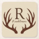 Brown-Rotwildgeweihe und TaupepapierUntersetzer mit personalisiertem Monogramm und Namen.