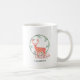 Eine Kaffee-Tasse mit digitalem Aquarell-Design. Eine pastellorangefarbene Rentiere-Silhouette in einem Kranz von Kräutern-Blätter. Pilze und Waldfarne zu seinen Füßen. Personalisieren mit einem Namen.