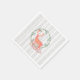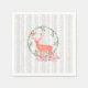 Papierservietten mit coolem boho-Stil, digitales Aquarelldesign. Eine pastellorangefarbene Rentiere-Silhouette in einem Kranz von Kräutern-Blätter. Pilze und Waldfarne zu seinen Füßen. Ein grauweißes Birkenbaummuster im Hintergrund.