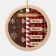 Feiern Sie die Familienfreude mit diesem personalisierten Weihnachtsschmuck mit einer charmanten Mischung aus rustikalem Holz und Büffel-karierten Mustern. Dieses Dekor ist perfekt für Familien geeignet, um den Namen Ihrer Familie, die Namen der einzelnen Mitglieder und das Jahr hinzuzufügen, was es zu einem schönen Sake für die Ferienzeit macht. Die verspielten Rentiere, festliche Schneeflocken und das gemütliche Design machen dies zu einer wunderbaren Ergänzung zu jedem Baum