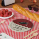 Rustikale Red Gratulation Graduate Hat Abschluss Paper Teller. Abschluss Teller mit Graduierung, Text Herzlichen Glückwunsch, ein Name des Absolventen. Der Text ist beige rustikal. Personalisieren Sie Ihren Text.
