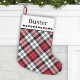 Ideal für Hundefreunde! Ein festlicher Weihnachtsweihnachtsbummel für Ihren furry bester Strumpf mit einem personalisierten Monogramm-Design mit einem klassischen, rot-weiß-schwarzen schottischen tartan karierten gemusterten Hintergrund. Personalisieren Sie den benutzerdefinierten Text mit dem Vornamen Ihres Tieres in schwarz. Niedliche Pfotendrucke und Herz prägen das Design.