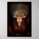 Rustikaler ländlicher Kuhschädel mit aufwändigem Design und grundiertem westlichem Hintergrund.