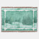 Eine hübsche, Vintage Winterlandschaft von Evergreens im Schnee auf dem alten Pergamentpapier. Fertig in grün und weiß.