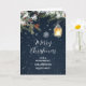 Frohe Weihnachten für Enkel seine Familienkarte mit rustikalem Wintergarten, Vintager Laterne und Schneeflocken Muster auf einem marineblauen Himmel.
