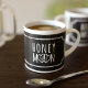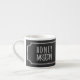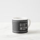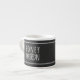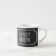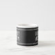 Eine niedliche, schwarz-weiße Espressotasse, die auf Ihren Flitterwochen verwendet werden kann. Fügen Sie einfach Ihre Initialen den verstrichenen Herzen hinzu