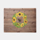 Rustikaler Sonnenblumenkopf und Holz Mit Monogramm Fußmatte