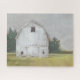 Rustikaler Barnyard I von Ethan Harper. Weiße rustikale Scheune auf einem Feld mit Bäumen.