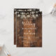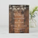 Diese rustikale Stallholz-Saitenleuchten Hochzeitseinladung kann mit Ihren Informationen in der modernen Typografie und Hochzeitswebsite QR-Code auf der Rückseite personalisiert werden. Entwickelt von Thisisnotme©