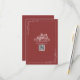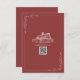 Hochzeit RSVP mit rustikaler Scheunenkleidung mit botanischer Grenze. Der Hintergrund ist rot gestummt. Personalisieren Sie den Text und den QR-Code.