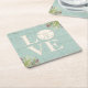 Ein Strandgetränk Untersetzer mit dem Wort Liebe. Ein Sand-Dollar-Muschel schafft das "o" in der Liebe. Dieser Untersetzer hat einen verwitterten Holzfußboden und die Ecken sind mit Meeresgras geschmückt. Dieser Papiersand-Dollar-Untersetzer ist eine tolle Ergänzung zu Ihrer Stranddekoration und ist auch ein tolles Geschenk. Entworfen für Sie von BlackBerry Boulevard.