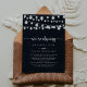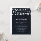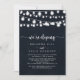 Diese rustikale Empfang-Karte mit Lichteffekten ist ideal für ein einfaches Post-Eement-Party. Das Design zeichnet sich durch schöne handbemalte Saitenleuchten in dunkelblauem Hintergrund aus. RSVP Karten werden separat verkauft.