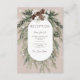 Dieses Design ist mit einem rustikalen grünen Kiefer und einem pineconfarbenen Bouquet auf einem weichen beigen Hintergrund mit weißen Blume gestaltet. Es wird durch ein weißes, glänzendes Overlay hervorgehoben, um den Zauber der schönen Winterferien zu veranschaulichen. Ideal für eine Weihnachts- oder Winterhochzeit. Diese Karte ist Teil der rustikalen Tan Pine Winter Sparkle Wedding Suite, die von Simply Farmhouse Press kreiert wurde.