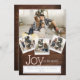 Vintages Holz und Imitate Polaroid gerahmte Fotos für diese 4 Foto Holiday Grußkarte - Joy to the World in zeitgenössischem Schriftart (die Sie ändern können, wenn Sie wollen) mit 4 Ihrer Lieblings-Fotos vorgestellt . Einfach anzupassen - das Gegenteil ist Imitat Vintages Holz.