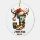 Mit diesem festlichen "J"-Ornament fügen Sie Ihrem Urlaubsstil eine Touch rustikalen Charmes hinzu. Dieses Ornament, festlich mit einer dekorierten Weihnachtsmannmütze und Rentierern geschmückt, verkörpert den fröhlichen Geist der Urlaubssaison. Im Buchstaben J zeigt eine gemütliche Winterszene schneebedeckte Berge, ein warmes Lagerfeuer und ein malerisches Zelt, das den Zauber der Winterabende weckt. Dieses Ornament, das individuell anpassbare Optionen für einen Namen, ein Jahr oder eine Nachricht bietet, dient als einzigartiger Pfand, der die festliche Jahreszeit und die Pracht der Natur würdigt.