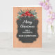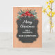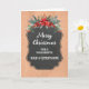 Fröhliche Weihnachten für Papa und Stiefmutter Karte mit rustikalem Kalkbrettmuster und winterlichem Laub mit Poinsettias.