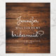 Werden Sie mein Vorschlag für eine Bridesmaid auf rustikales Stallholz. Schön für Hochzeiten auf dem Lande.