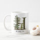 Rustikaler Wald Letter H Monogram Name - Tasse mit prächtigen immergrünen Bäumen, die Ihren Anfang umgeben. Unsere einfach zu bedienende Vorlage macht es so einfach, Ihren Namen hinzuzufügen. Tasse ist Teil einer Sammlung. Wenn Sie nicht sehen, was Sie suchen, senden Sie bitte eine Nachricht, es gibt eine gute Änderung, die heute hochgeladen wird. Macht ein wunderbares, nachdenkliches Geschenk, das für die nächsten Jahre geschätzt werden kann. Entworfen von Beverly Bainbridge Homespun Hütte Designs E: homespuncottagedesigns@gmail