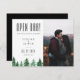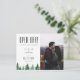 Rustikaler Aquarellwald, "OPEN BAR!", Hochzeitsfotokarte Save the Date Spaß. Die Rückseite der Karte weist eine solide schwarze Farbe auf.