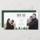 Rustikaler Aquarellwald, "OPEN BAR!", Hochzeitsfeier Spaß Save the Date 2-Foto-Karte. Die Rückseite der Karte weist eine solide Jägergrüne Farbe auf.