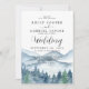 Elegante, rustikale Wasserfarbenberge und die Waldszene laden zu einer Hochzeit ein, mit üppig blauen und grünen Bäumen und Bergen. Für diejenigen, die eine romantische, traumhafte Waldlandschaft Liebe haben, ist die Feier und Feier ein unvergessliches Erlebnis.