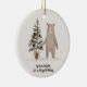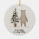 Rustikaler Waldbär mit Weihnachtsbaum Keramik Ornament
