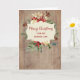 Frohe Weihnachten für Sohn in der Rechtskarte in rustikalem Holzmuster und Aquarell Blume und Blätter.