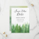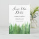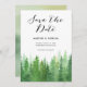 Rustikaler Watercolor Wald Evergreen Ankündigung Datum freihalten Rustikale Aquarellwald, Hochzeit speichern das Datum mit "Save the Date" in hübscher Skriptkalligraphie und QR-Code.