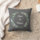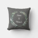 Rustikales dunkelgraues Kissen mit botanischem olivgrünem Blätter des Watercolor, Braut und Bräutigam, Wedding Kissen.