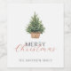 Rustikaler Weihnachtsbaum im Korb Weinetikett