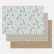 Dieses skurrile Weihnachtsverpackungs-Papier Set hat drei verschiedene Designs. Das erste einzigartige Design zeigt einen Winterpolarbär mit neutralem blauen Hintergrund und Sternen und Schneeflocken. Das zweite Verpackungsdesign zeichnet sich durch moderne blaue Streifen aus, und das dritte zeichnet sich durch ein elegantes Schneemuster auf braunem Kraftpapier aus. Die perfekte Winterverpackung für Ihre Geschenke in dieser Ferienzeit.