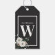 Dieses Design ist einfach, aber macht eine Aussage, mit dem Monogramm Initial in Weiß auf einem weichen schwarzen Hintergrund. Ein weißer Rahmen ist mit einem rustikalen Bouquet aus Kiefern und weißen Winterfloralen dekoriert. Dieses Geschenk-Tag teilt Ihren Urlaub und Weihnachtsjubeln mit den Gästen in einem schönen, schlichten Stil. Erstellt von der einfachen Farmhouse Press.