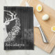 Mit diesem rustikalen Watercolor Weißer Rentier Weihnachtshandtuch verleihen Sie Ihrer Küche gemütlichen saisonalen Charme. Mit einem anmutigen, weißen Rentier, der von einem filigranen Kranz gerahmt ist, werden die Erholungen auf einem verwitterten Holzhintergrund mit weichen grauen Schneeflocken gestaltet. Ein fröhlicher "Happiest Holidays" Gruß in moderner Typografie verbindet sich perfekt mit dem rustikalen Landhausstil und macht ihn zu einem stilvollen und dennoch praktischen Stück für die Saison. Ideal als fröhlicher Akzent in der Ferienküche oder als nachdenkliches Weihnachtsgeschenk, bringt dieses Handtuch Funktionalität und inspiriert Schönheit auf Ihre Zuhause.