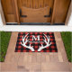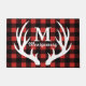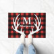 Rustikale karierte Fußmatte des Karos des roten und schwarzen Büffels mit einer klaren weißen Rotwildgeweih-Silhouette und Ihrem personalisierten Familienname- und Monogrammbrief.