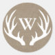 Rustikaler Weißhirschenfänger Burlap-Anfangsbuchst Runder Aufkleber